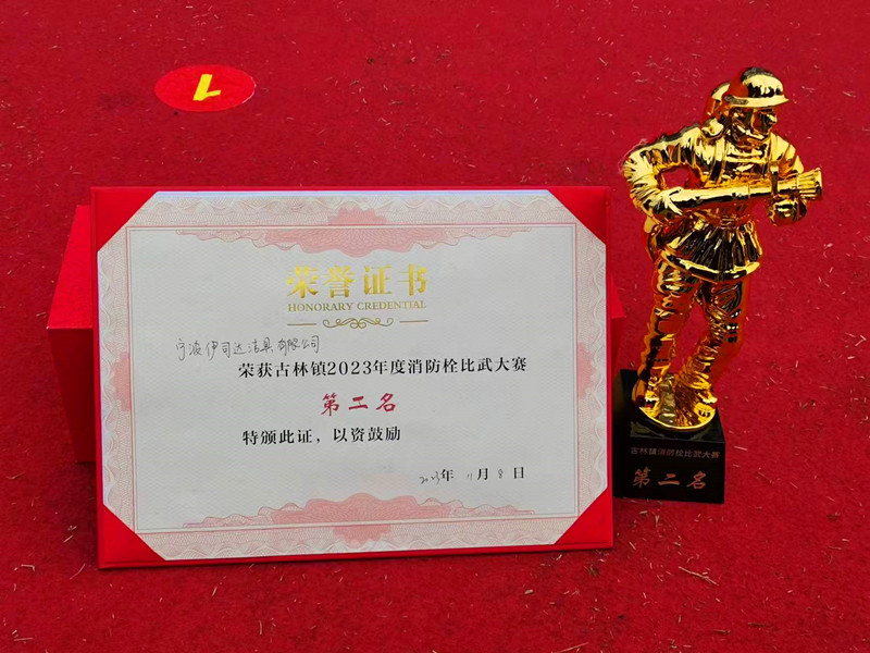 2023年11月海曙区古林镇消防技能大赛我司选手荣获消防栓比武二等奖。