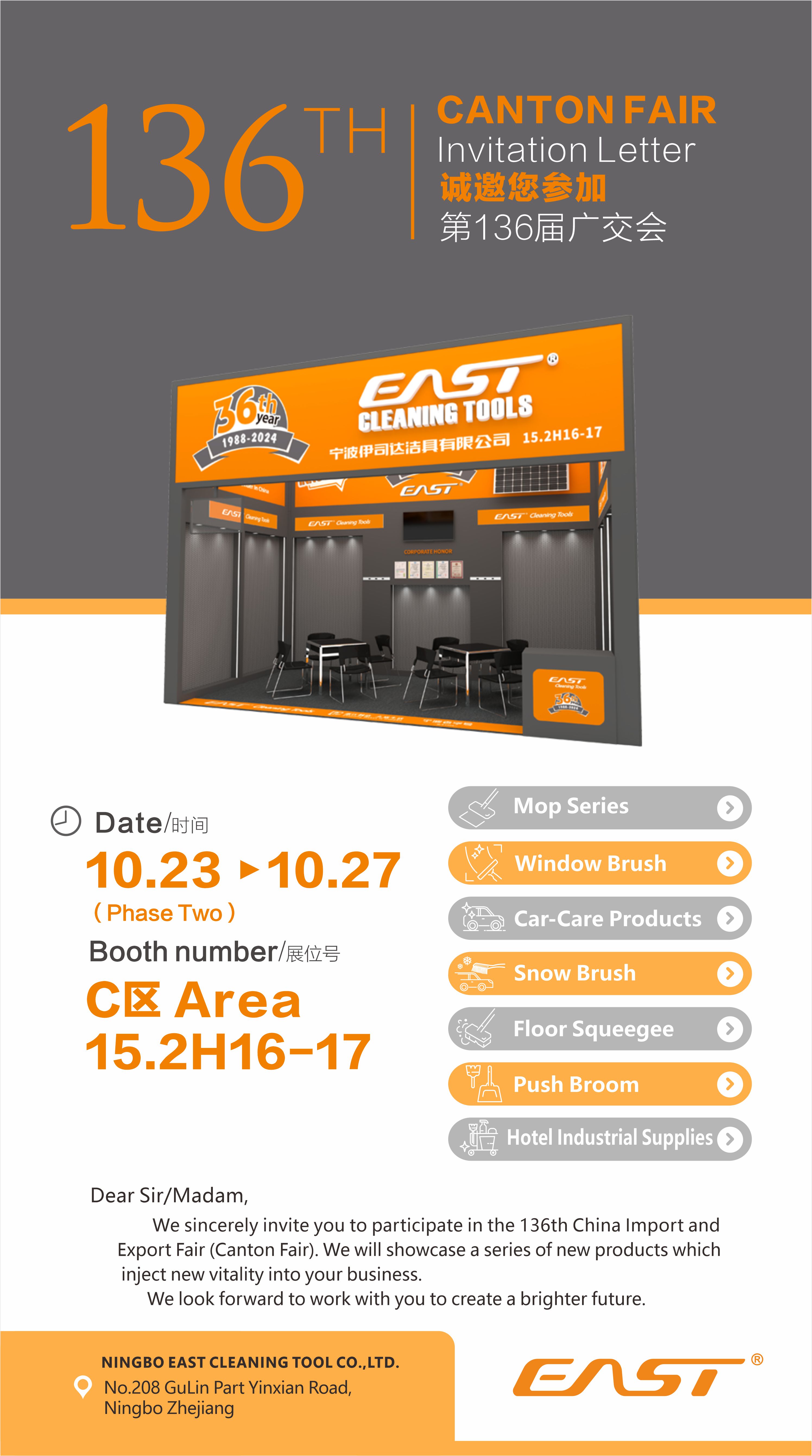 2024年10月23—27日广交会2期洁具公司展位,展位号:C区15.2H16—17。