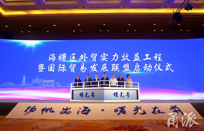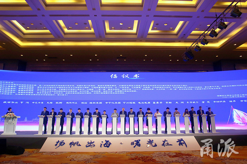2019年7月5日下午,海曙区40家外贸实力效益工程企业签下一纸盟约,宣布加入“国际贸易发展联盟”的合作组织,成为全市首个整合国内外资源的国际贸易发展联盟。