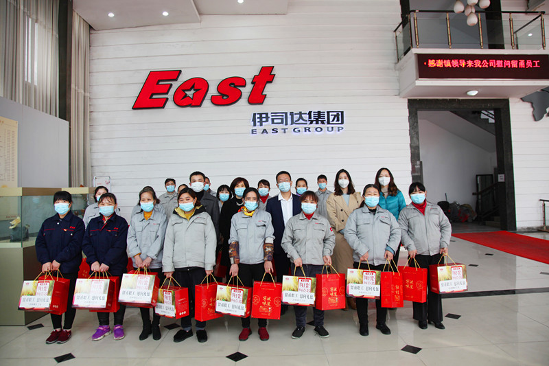2021年2月春节前夕,宁波市海曙区古林镇领导来公司慰问留甬员工,送来新年礼物。