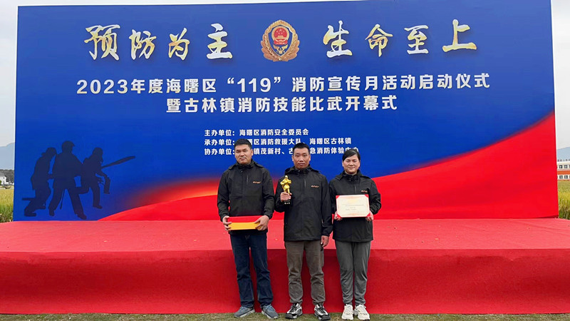 2023年11月海曙区古林镇消防技能大赛我司选手荣获消防栓比武二等奖。