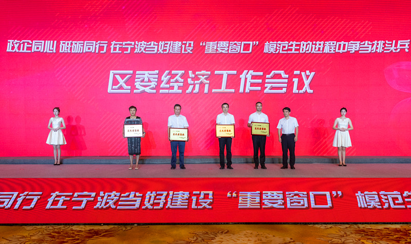 7月30日,海曙区召开2020年度全区经济工作会议,会上四家2019年度海曙区区长质量奖企业(组织)受到表彰,海曙区区长徐强为获奖企业颁奖,宁波伊司达洁具有限公司名列其中。