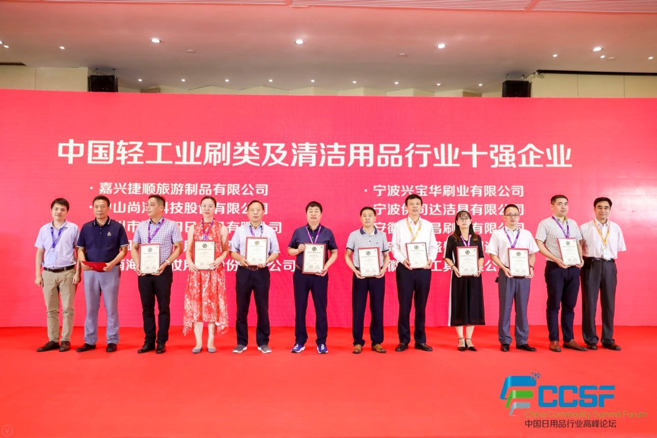 2019年中国日用品行业高峰论坛,热烈祝贺宁波伊司达洁具有限公司荣获年度中国轻工业刷类及清洁用具行业十强企业荣誉称号。